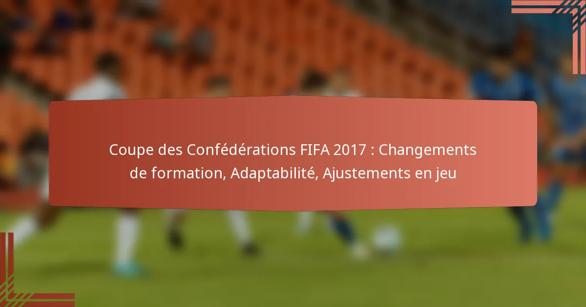 La Coupe des Confédérations FIFA 2017 a mis en évidence l’importance des changements de formation et de l’adaptabilité dans le football, les équipes ajustant fréquemment leurs stratégies pour optimiser leurs performances. Avec des formations comme 4-2-3-1 et 3-4-3, les entraîneurs ont effectué des ajustements en cours de match qui ont non seulement renforcé les points forts de leurs équipes, mais ont également exploité les faiblesses de leurs adversaires, entraînant des matchs palpitants.
