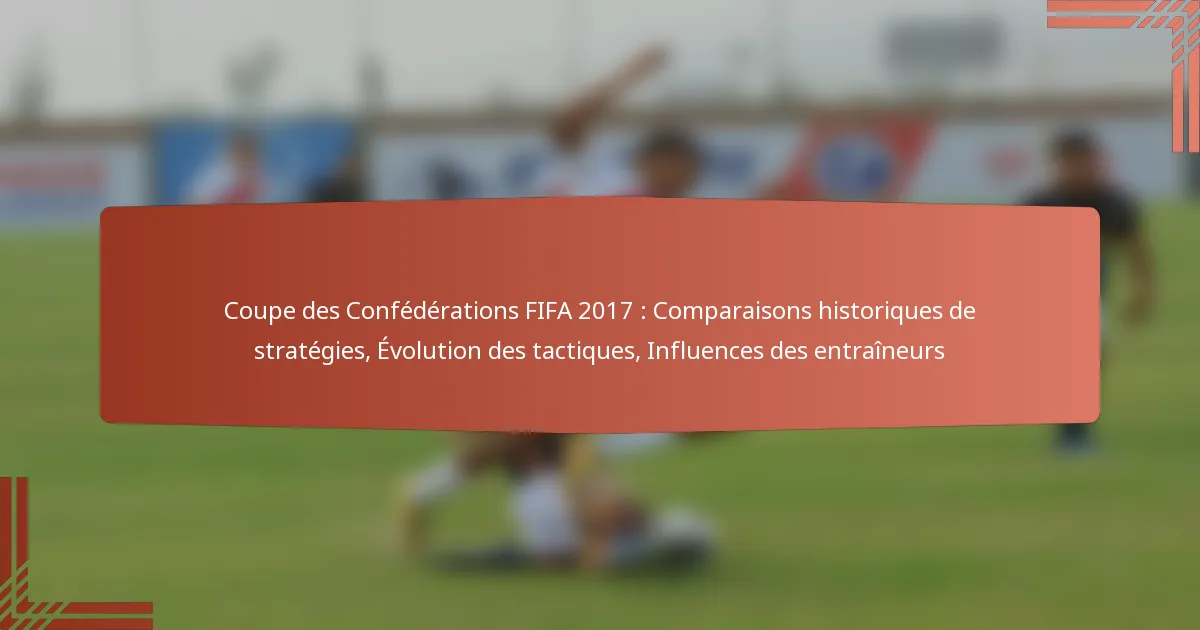 La Coupe des Confédérations FIFA 2017 a présenté plusieurs changements de formation clés qui ont significativement influencé la performance des équipes et les résultats des matchs. Les équipes ont adapté leurs stratégies pour renforcer leurs points forts et exploiter les faiblesses des adversaires, menant à des matchs dynamiques et engageants.