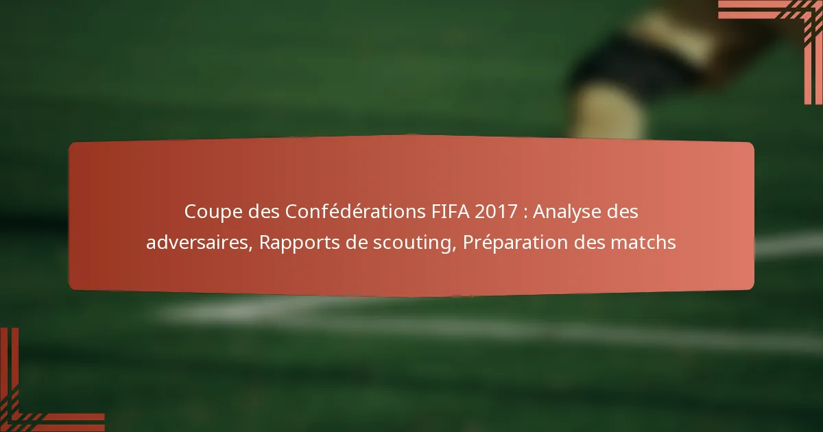 La Coupe des Confédérations FIFA 2017 a réuni huit équipes de premier plan, dont l’Allemagne, la Russie, le Chili et le Portugal, chacune mettant en avant ses styles et forces footballistiques uniques. Une analyse efficace des adversaires est cruciale pour les équipes, se concentrant sur les configurations tactiques, les capacités des joueurs et les performances récentes pour améliorer la préparation et la stratégie des matchs. Les rapports de scouting jouent un rôle essentiel dans ce processus, offrant des aperçus détaillés sur les statistiques des joueurs, la dynamique des équipes et les formations tactiques pour éclairer la prise de décision sur le terrain.