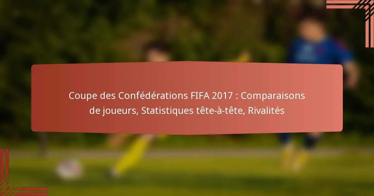 La Coupe des Confédérations FIFA 2017 a été une démonstration passionnante de football international, avec des performances remarquables et des rivalités intenses entre les meilleures équipes. Les joueurs ont montré leurs compétences à travers des statistiques impressionnantes, y compris des buts, des passes décisives et des contributions défensives, reflétant la nature compétitive du tournoi. Analyser ces comparaisons de joueurs offre des aperçus précieux sur l’efficacité tactique et le génie individuel qui ont défini l’événement.