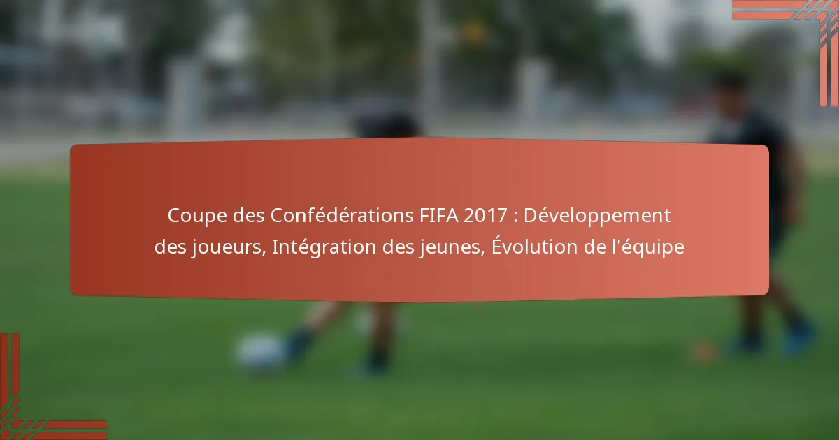 La Coupe des Confédérations de la FIFA 2017 a présenté plusieurs stratégies clés de développement des joueurs axées sur l’intégration des jeunes, des méthodologies d’entraînement innovantes et l’évolution des équipes nationales. Ces stratégies ont mis l’accent sur l’identification des talents émergents, l’adaptation des styles d’entraînement et l’utilisation de l’analyse pour améliorer la performance des joueurs.