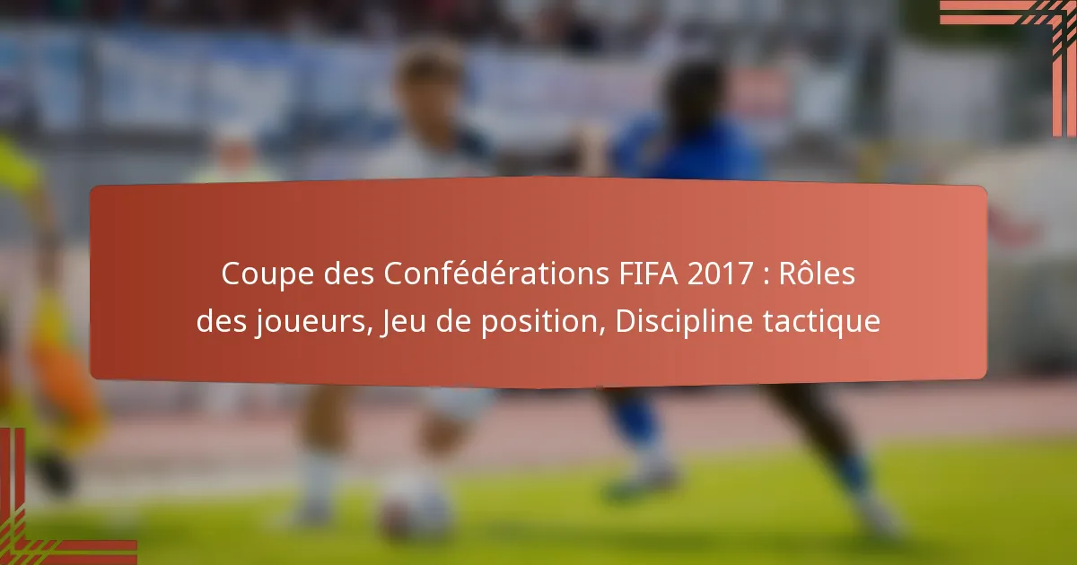 La Coupe des Confédérations FIFA 2017 a mis en évidence l’importance des rôles des joueurs et de la discipline tactique dans la performance des équipes. Chaque poste, des défenseurs aux attaquants, a contribué à une stratégie cohérente qui a influencé les résultats des matchs. De plus, un jeu de position efficace a amélioré l’organisation spatiale des équipes, permettant de meilleures opportunités offensives et une stabilité défensive.
