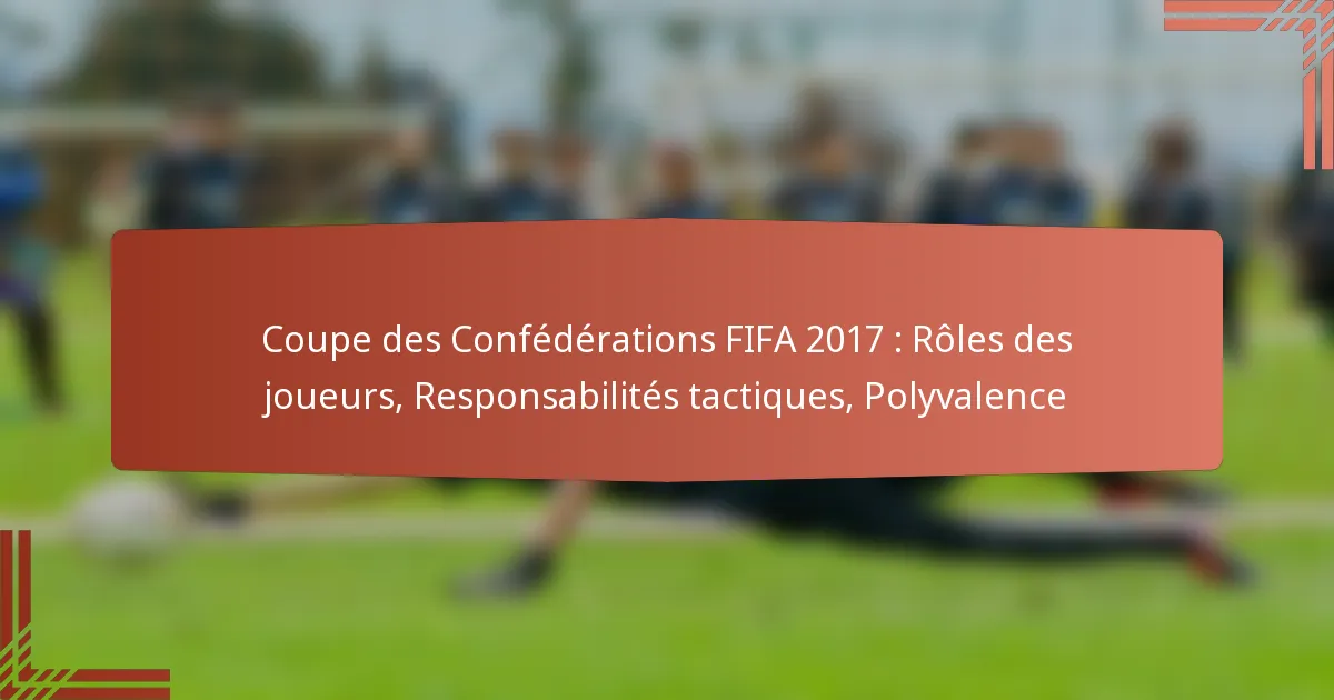 La Coupe des Confédérations FIFA 2017 a mis en évidence l’importance des rôles distincts des joueurs et des responsabilités tactiques dans la réussite d’une équipe. Chaque position, des attaquants aux gardiens de but, a joué un rôle vital dans la stratégie globale, tandis que plusieurs joueurs ont démontré une polyvalence remarquable, s’adaptant à plusieurs rôles pour améliorer la dynamique et la performance de l’équipe.