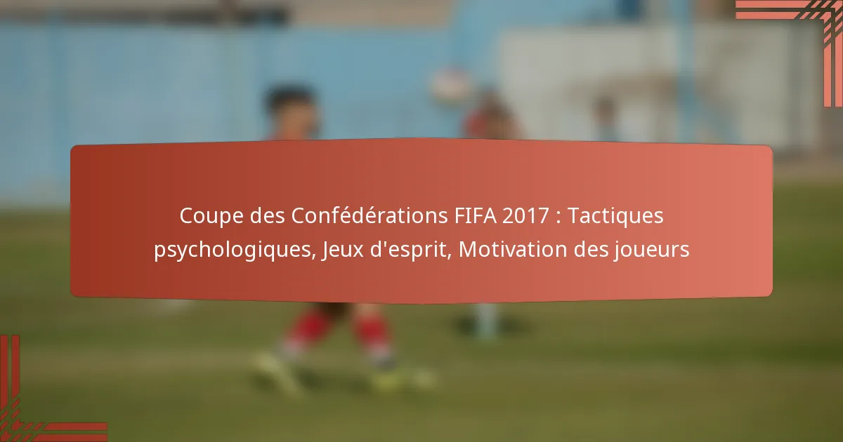 La Coupe des Confédérations de la FIFA 2017 a mis en lumière l’importance des tactiques psychologiques dans le sport, en se concentrant sur l’amélioration de la performance des équipes et de la motivation des joueurs. Les entraîneurs et les psychologues du sport ont mis en œuvre des stratégies pour gérer la pression et favoriser la cohésion, tandis que les jeux d’esprit ont influencé à la fois les résultats des matchs et le moral des joueurs. Comprendre ces éléments psychologiques offre un aperçu de la manière dont les équipes ont navigué à travers les défis d’une compétition à enjeux élevés.