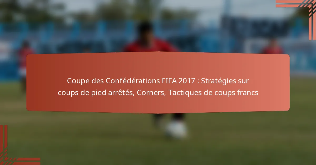 Les stratégies de coups de pied arrêtés ont joué un rôle crucial lors de la Coupe des Confédérations de la FIFA 2017, influençant la dynamique et les résultats des matchs. Les équipes ont efficacement utilisé les corners et les coups francs pour créer des opportunités de but, montrant une variété d’approches tactiques.
