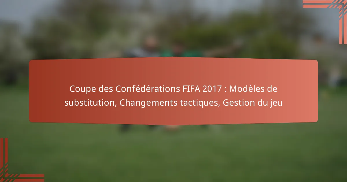 La Coupe des Confédérations FIFA 2017 a mis en évidence l’importance des schémas de substitution et des changements tactiques dans l’influence des résultats des matchs. Les équipes ont utilisé stratégiquement les substitutions pour gérer la fatigue et adapter leur jeu, ce qui a conduit à des matchs dynamiques et engageants. Des techniques efficaces de gestion de jeu, y compris le contrôle du temps et les ajustements tactiques, étaient essentielles pour que les équipes maintiennent leurs avances et orchestrent des retours tout au long du tournoi.