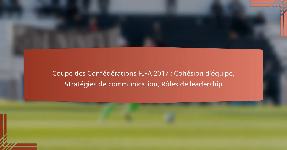 Le leadership a significativement influencé la dynamique d’équipe durant la Coupe des Confédérations de la FIFA 2017 en façonnant la cohésion, la communication et la performance globale. Des leaders efficaces ont favorisé l’unité et la clarté, essentielles pour naviguer dans l’environnement de haute pression de la compétition internationale.